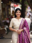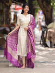 Rajvi Our Tissue Handwork Kurti And Banaras Silk Shawl Set